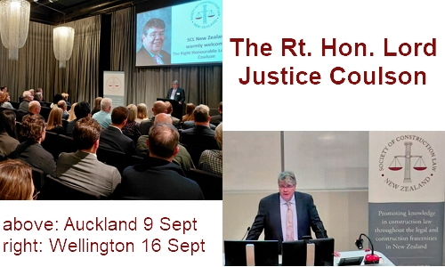 SCL was very privileged to have Lord Justice Coulson join members for 2 lectures, with his Wellington lecture being livestreamed courtesy of Te Herenga Waka-Victoria University of Wellington, Faculty of Law. Lord Justice Coulson entertained with a lively and interesting recollection of his career path and discussed, amongst other things, adjudication and the Technology and Construction Court (TCC). Lord Coulson also shared his perception of the changing nature of claims / disputes and how that is dealt with.